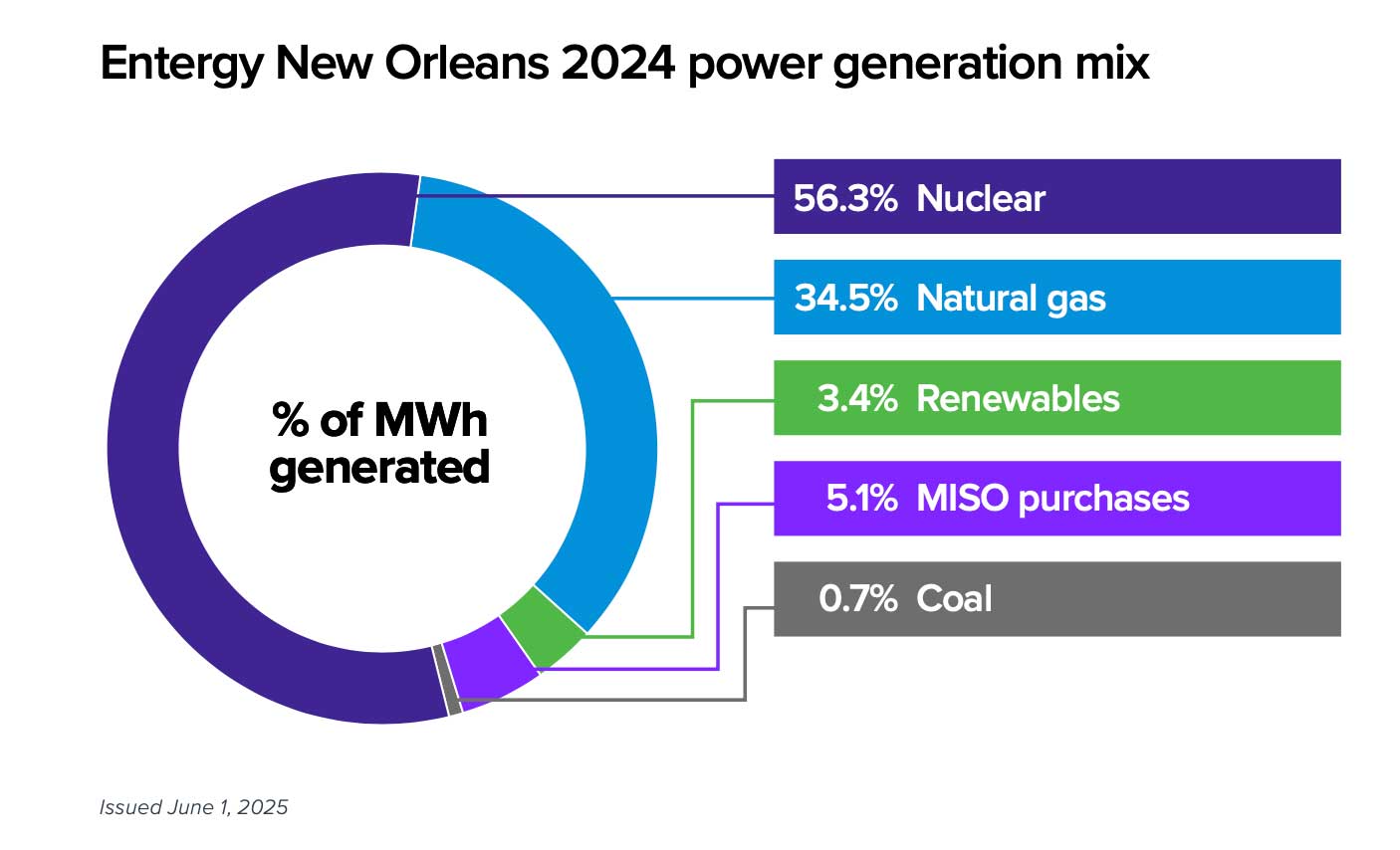 This is Entergy New Orleans’ power generation mix and accounts for participation in clean energy offerings, removing the subscriptions as well as the RECs associated with Renewable and Clean Portfolio Standard from the mix.